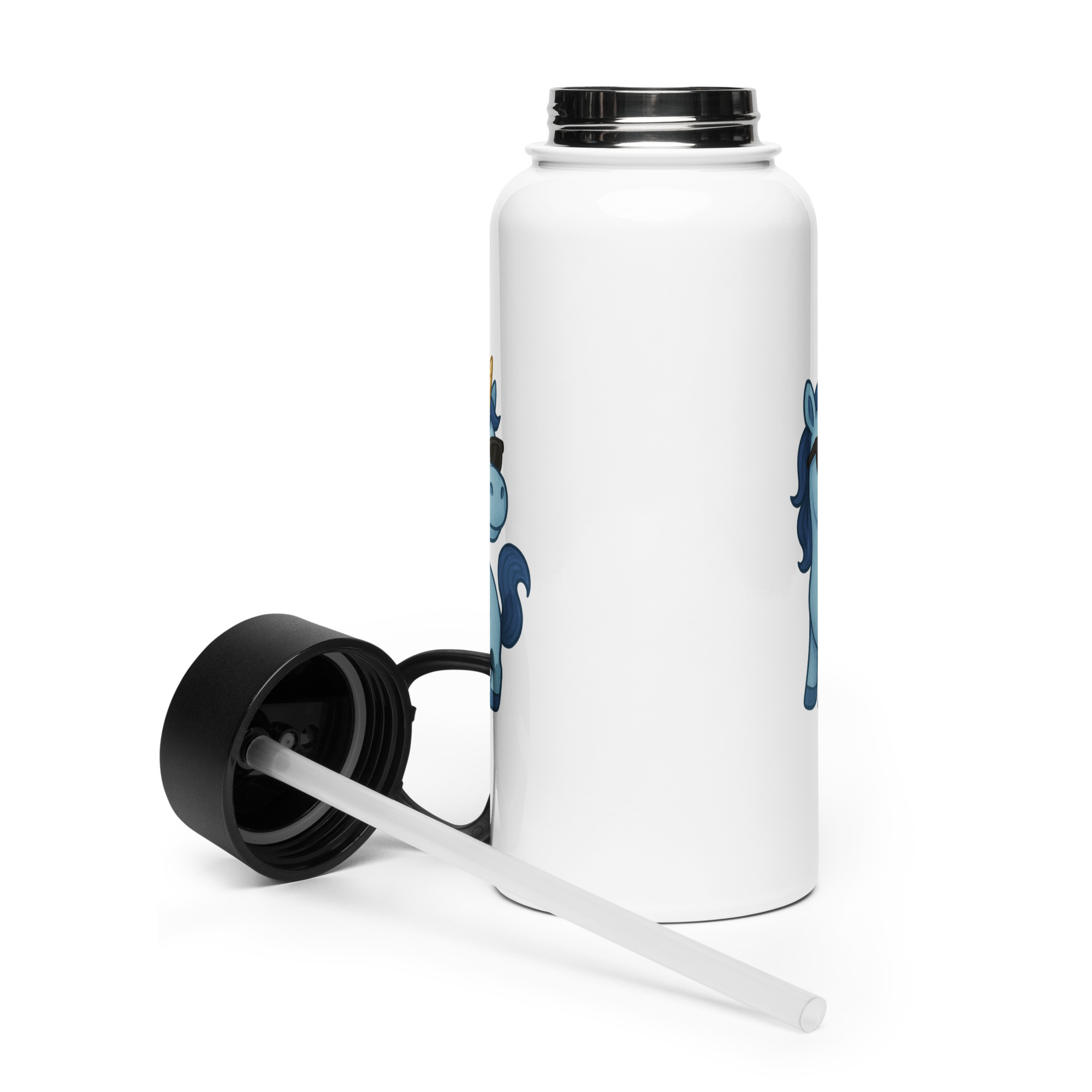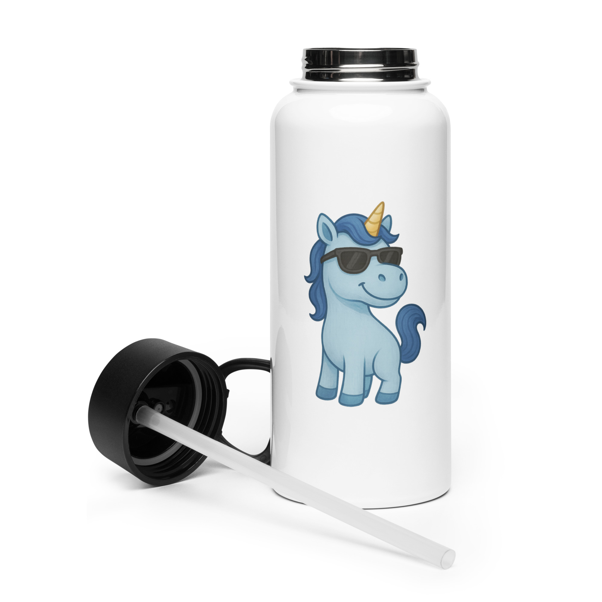 Blaues Einhorn Edelstahl Trinkflasche mit Strohhalm