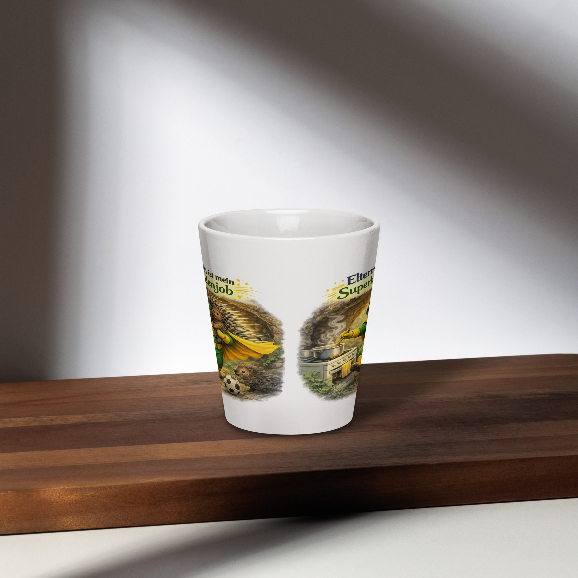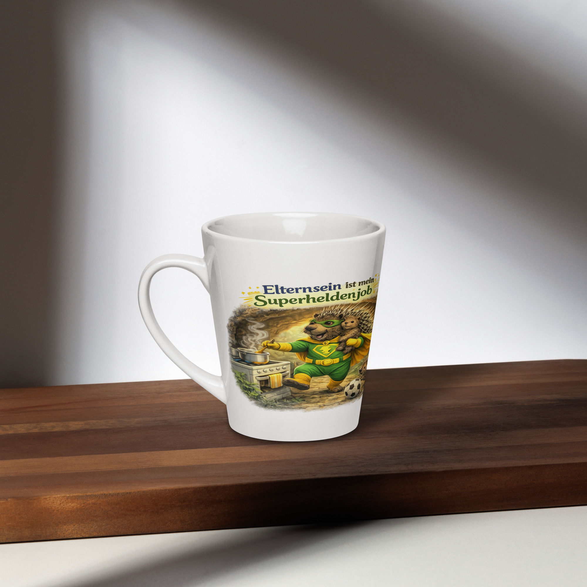 Milchkaffeetasse Elternsein ist mein Superheldenjob