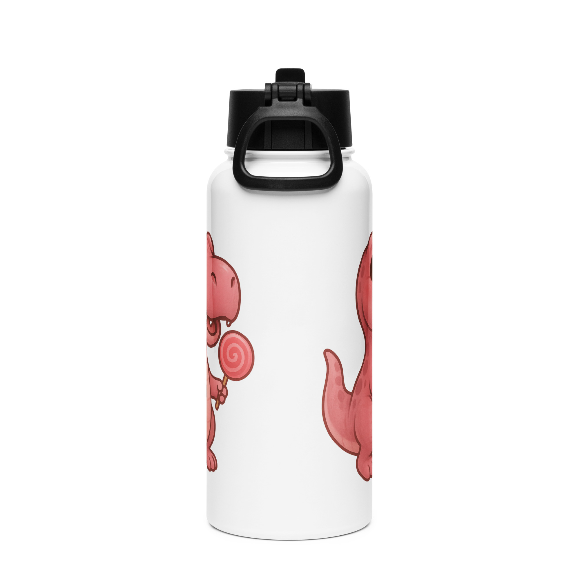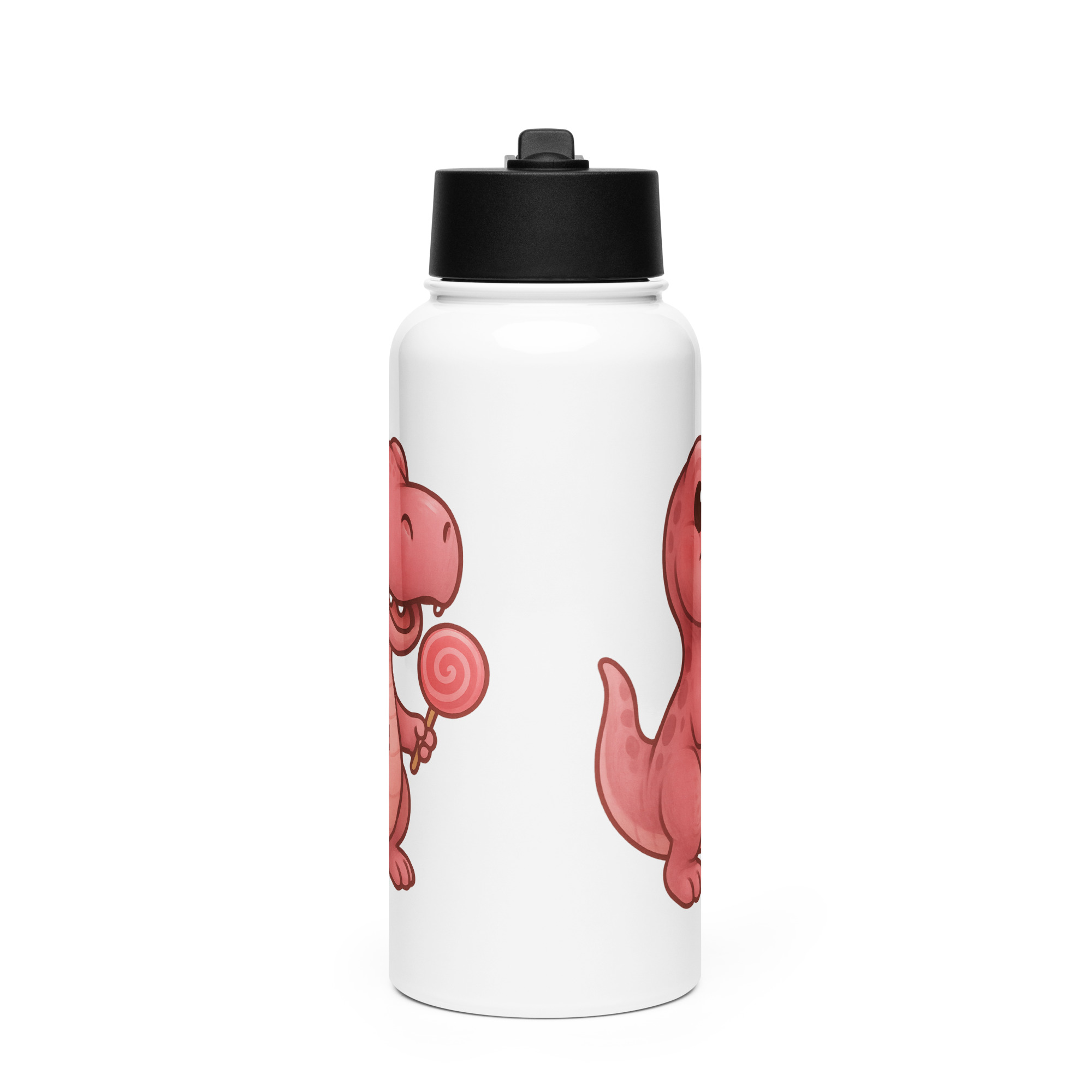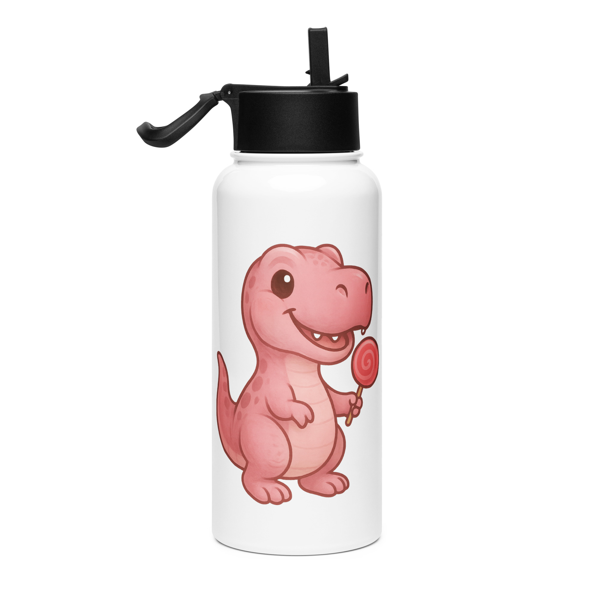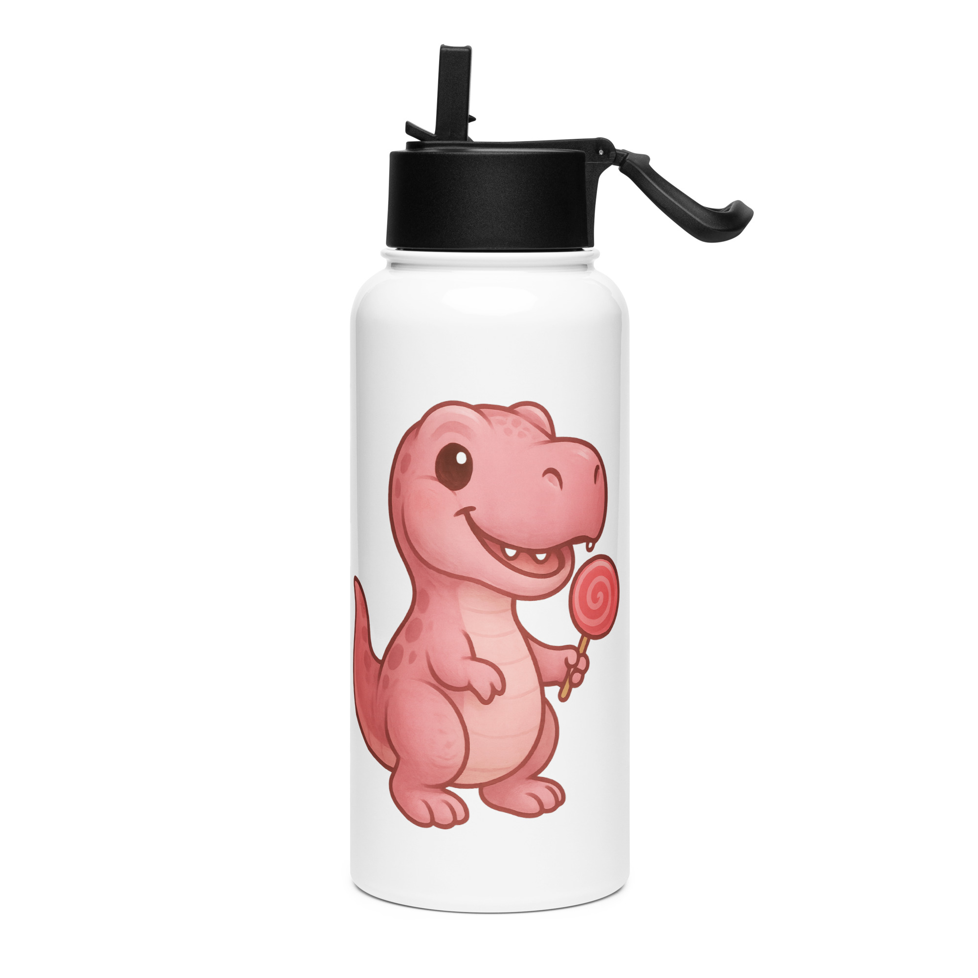 Rosa T-Rex Edelstahl Trinkflasche mit Strohhalm